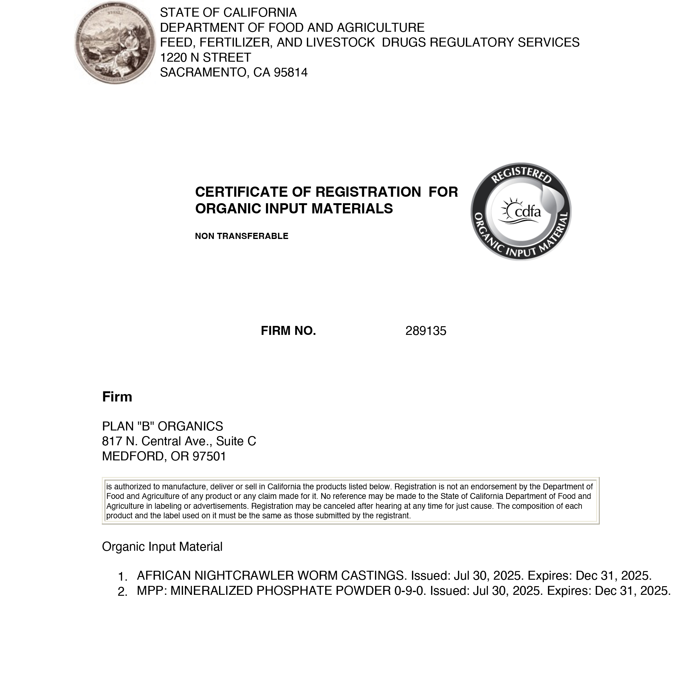 Packaged in the USA for: PLAN “B” ORGANICS® 975 SE Sandy Blvd. Portland, OR 97214